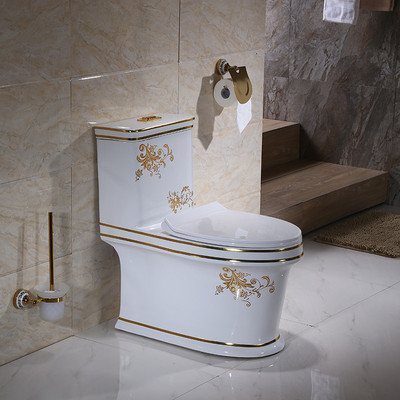 One Piece Flush and Soft Closing Toilet Bathroom Ceramic Golden